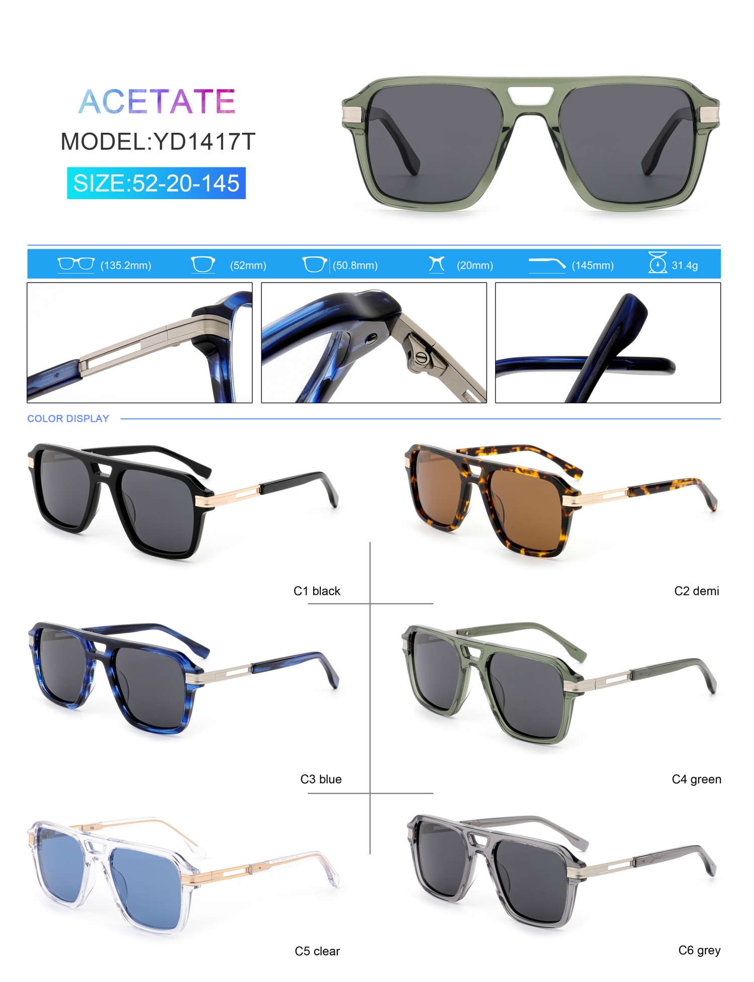 Fashionable High-end Acetate and Metal Hybrid Sunglasses
